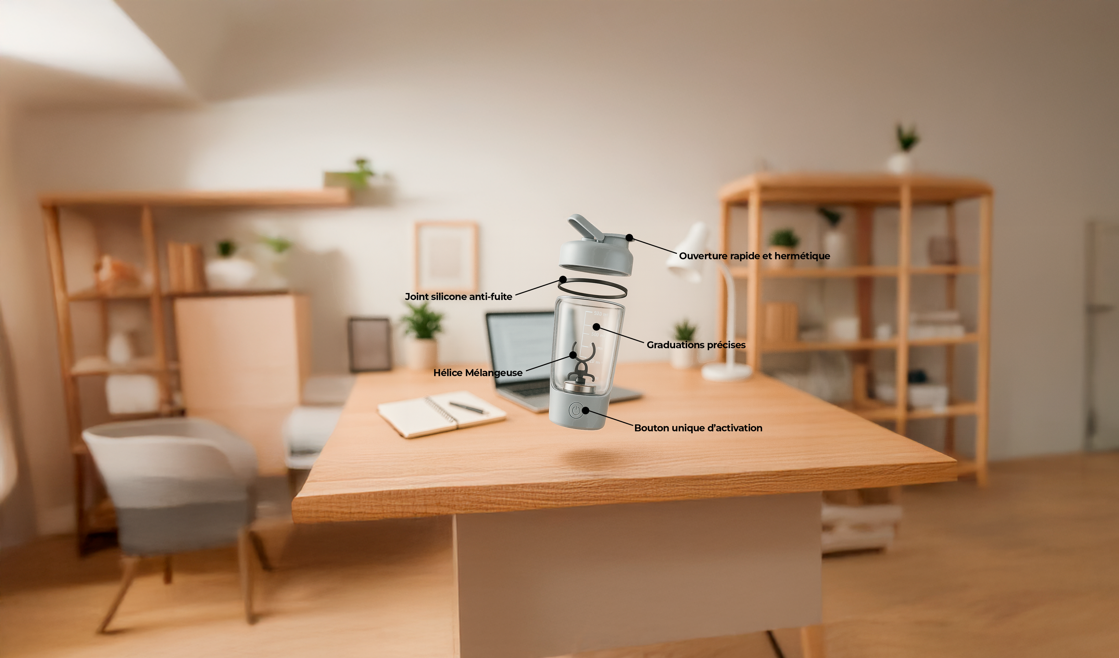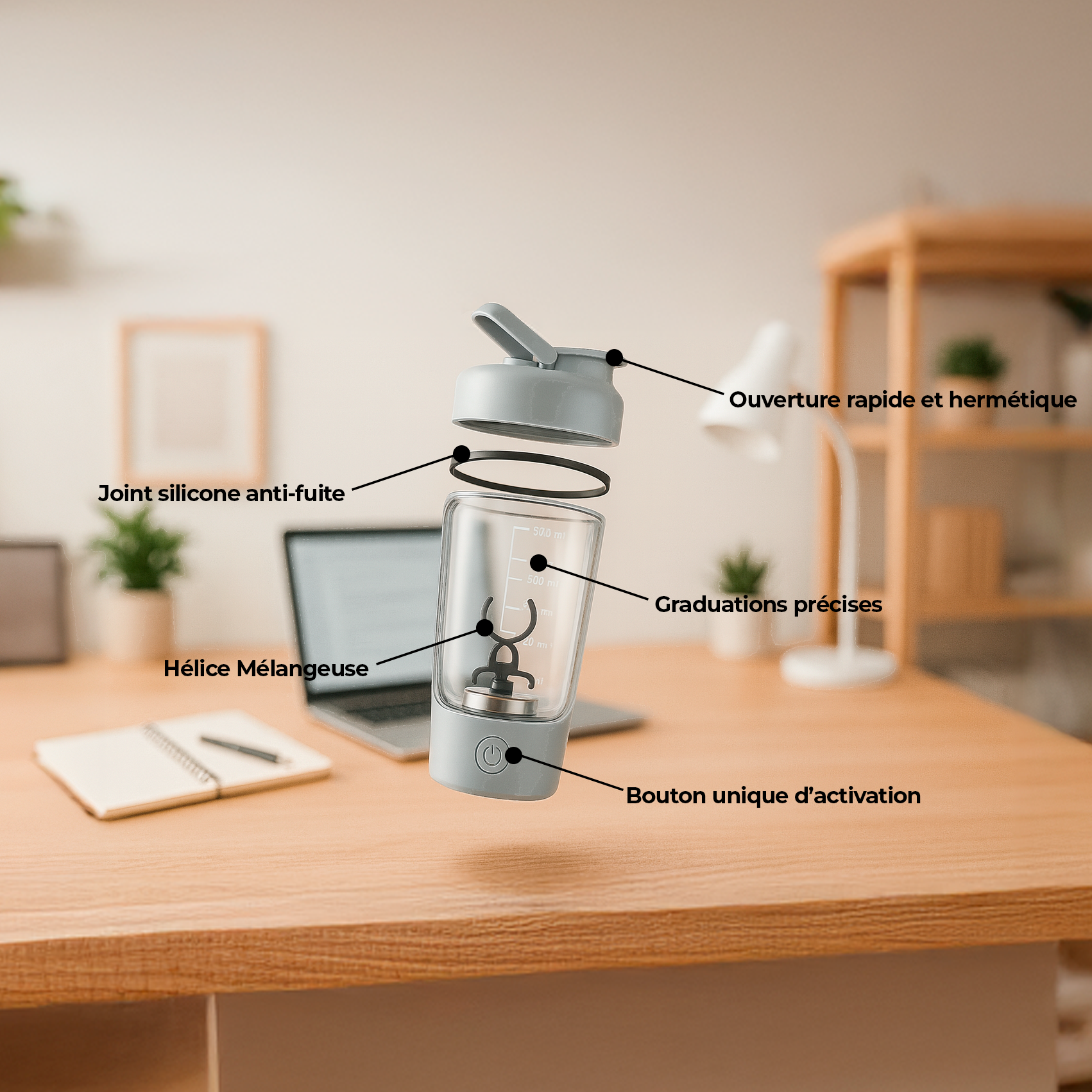 Le shaker électrique sans fil qui mélange vos boissons en quelques secondes. Pratique, rapide et rechargeable.